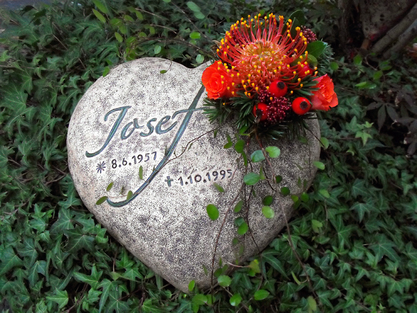 herzförmige Grabauflage mit in-